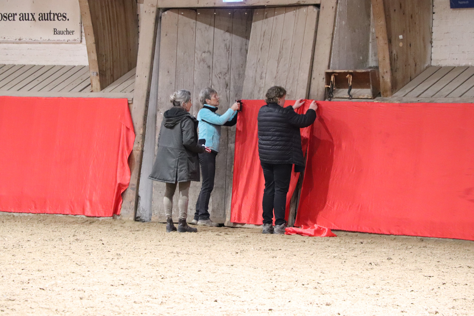 Im ersten Schritt werden die über 200 Meter Tuch montiert. Dies bietet den Konkurrentinnen und Konkurrenten im Vorfeld die Möglichkeit, unerfahrene Pferde an die Umgebung zu gewöhnen.