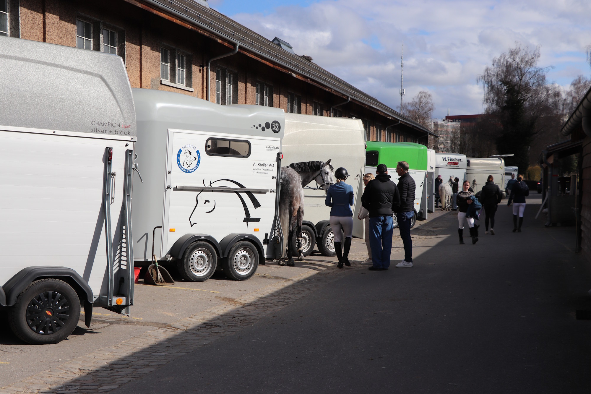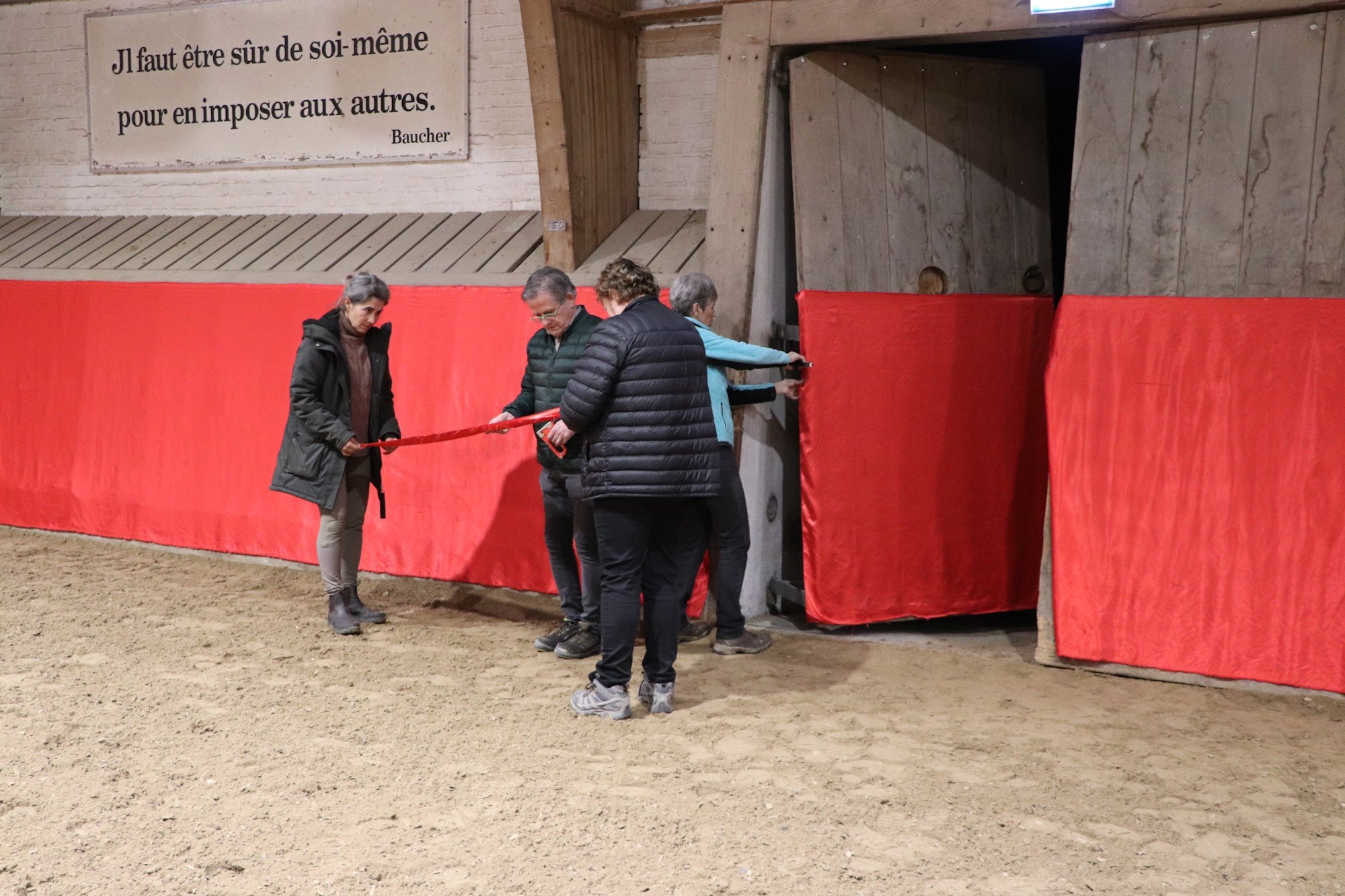 Im ersten Schritt werden die über 200 Meter Tuch montiert. Dies bietet den Konkurrentinnen und Konkurrenten im Vorfeld die Möglichkeit, unerfahrene Pferde an die Umgebung zu gewöhnen.